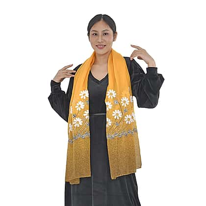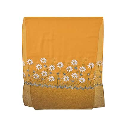 Floral Pattern Embroidered Daisy Scarf (Size 180x68 cm) - Yellow - Teal