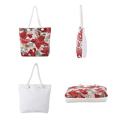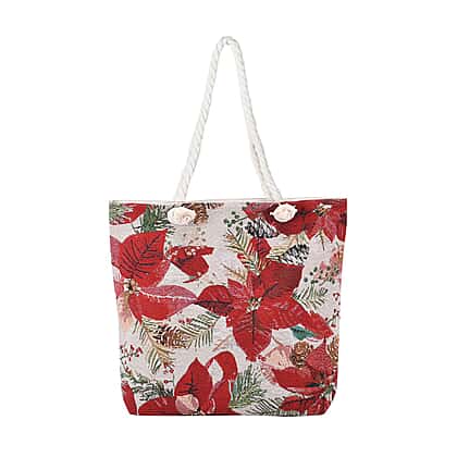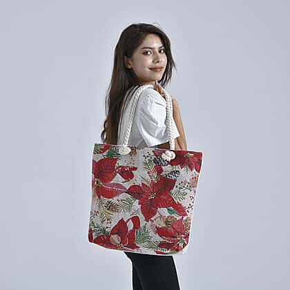 Feel the festivity by adding this Christmas tote bag to your accessory collection. The apparent size and charming pattern of this bag will make a solid appeal for the décor of your living space. This bag is made with polyester and has noticeable storage for keeping your Christmas ornaments handy and safe. The woven flowers and leaves design creates a contemporary style for this bag and elevates the festivity. The handle drop is made with pieces of rope, creating a solid lift. This bag has a zipper inside.