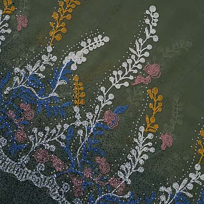 Flower Embroidered Scarf (Size 180x68 Cm) - Green & Multi