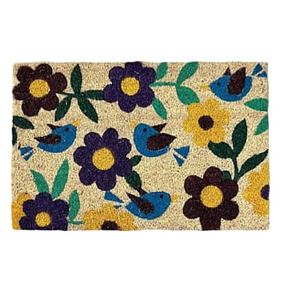 Flower With Birds Coir Mat (Size 60x40 cm) - Multi