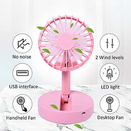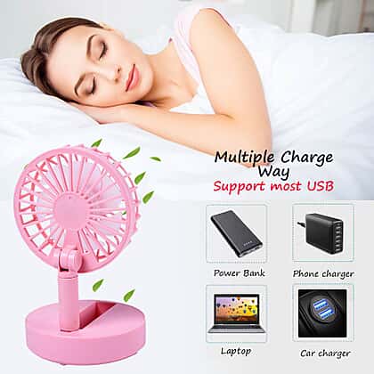 Foldable and 180 Degrees Adjustable Mini Fan with 2 Wind Speed Settings and No Noise Design - Pink