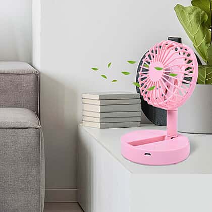 Foldable and Adjustable Mini Fan with 2 Wind Speed Settings (Size-9x9x16cm) - Pink
