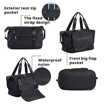 Your perfect go-to travel companion is this foldable waterproof travel bag. This bag is made from 100% nylon material with an inner lining of polyester which is a durable, lightweight and waterproof material. This bag has a foldable design where you can reduce or increase the size of the bag as per your needs, it has slide in-pockets and zipper pockets to keep your valuable safe and secure. You can carry it along where ever you go as it has a handle drop feature to hold the bag. Carry your essentials in style where ever you go with ease.