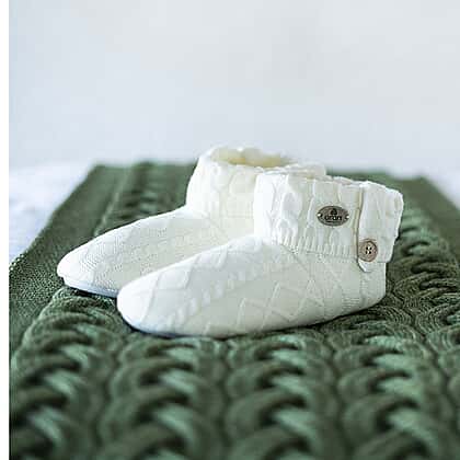 ARAN Knitted Design Bootie Slippers with Fleece Llining - White