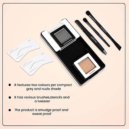 Give your face a saloon-like finish with this duo brow kit by Beautiful Brows. This kit contains a duo slate grey colour eyebrow powder, highlighter, stencil shapes, duo applicator brush, highlighter brush and tweezers. The powder is smudge-proof, water resistant and will stay for a longer time. The powder can easily be applied on both skin and under the eyebrows. Uplift your party look with this duo set and elevate the look of your outfit.