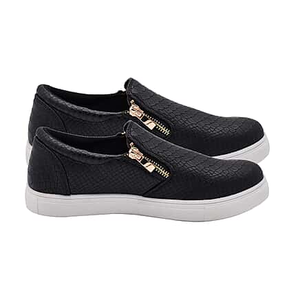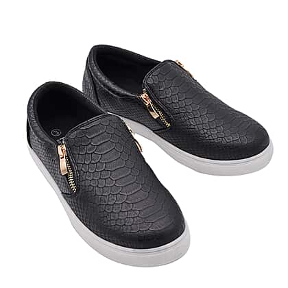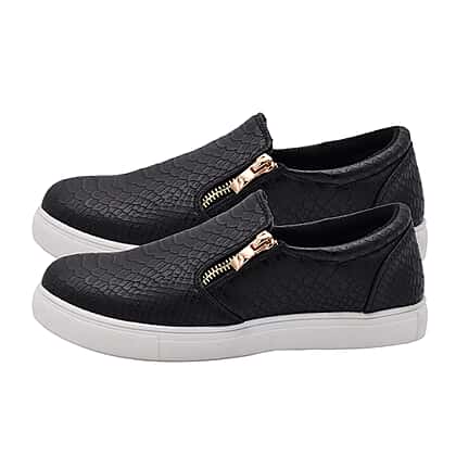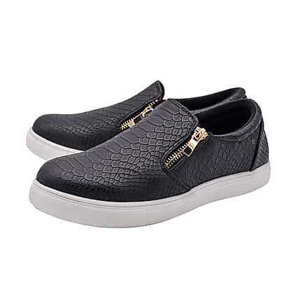 Black Croc Pattern Zipper Canvas Trainers