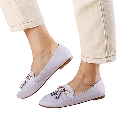 LA MAREY Velvet with Tassel and Metal Buckle Detailing Loafers - Light Purple