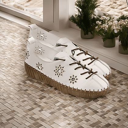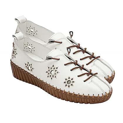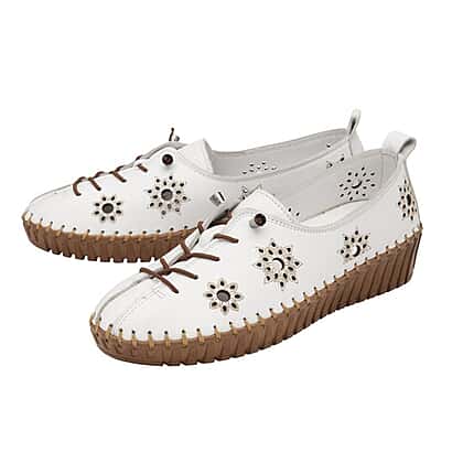 - Giving this casual shoe a remarkable finish is laser cut-out detailing that is accentuated by decorative etching on the upper