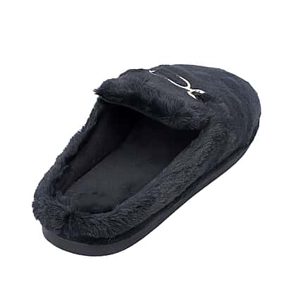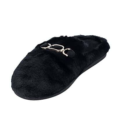 Super Soft Seude Faux Fur Slippers with Gold Chain and Waterproof TPR Sole (Size 5-6) - Black