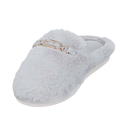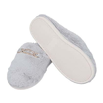 Super Soft Seude Faux Fur Slippers with Gold Chain and Waterproof TPR Sole (Size 5-6) - Black