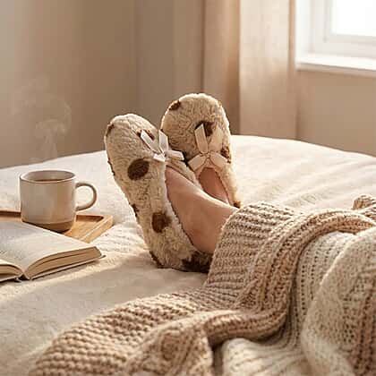 Super Soft Warm Cozy Spots Design Slipper Socks (UK 4-8) - Mocha