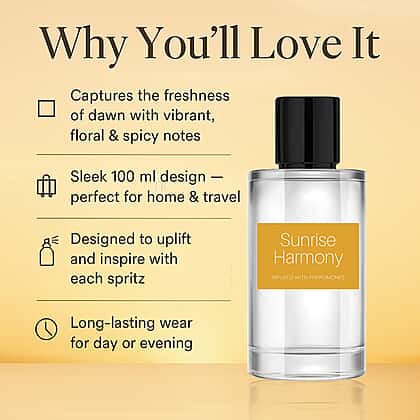 Experience the essence of joy and renewal with Sunrise Harmony Eau De Parfum. This exquisite 100ml fragrance captures the serene beauty of a new dawn, blending fresh, floral notes with a subtle hint of spice. Perfect for those who appreciate the finer things, Sunrise Harmony invites you to embrace each day with a spirit of optimism and grace. Its elegant scent profile makes it an essential addition to your daily routine or a special night out.