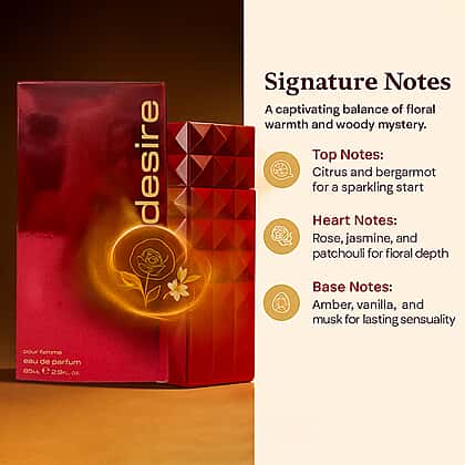 There’s something instantly captivating about Laurelle Noir Desire Eau de Parfum for Her, especially with its mix of citrus brightness, floral depth and warm sensuality. The citrus and bergamot open with a sparkling lift, creating a clean, fresh first impression. Rose, jasmine and patchouli follow with a rich, romantic feel that settles beautifully on the skin. The base of amber, vanilla and musk brings warmth and softness that lasts through the day. It’s a lovely choice if you enjoy perfumes that feel confident, feminine and a little mysterious, making it perfect for everyday wear or evening moments.