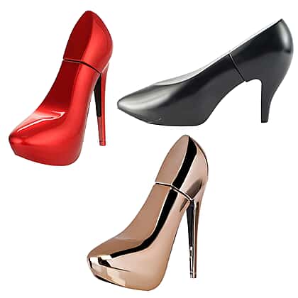 Step into a world of ultimate scent obsession with this Shoo Eau De Parfum Trio, a high-performance collection for the modern curator. Housed in a majestic shoe silhouette with limited edition finishes, this set of three is a brilliant sanctuary for your dressing table. Addict Chic in black opens with a gorgeous passion fruit sorbet and mango blossom, evolving into a fresh citrus breeze with a sweet sandalwood finish. It is the premier choice for a summery, fruity glow that transitions from day to night. For a more sultry mood, the Sexy Shoo Red offers a sophisticated blend of orange blossom and Turkish rose, grounded by a creamy tonka bean and vanilla base. The Addict Allure in rose gold completes the set with its fruity, summery scent. Whether you seek a fruity spark or a floral depth, this coordinated set ensures a resplendent and fragrant aesthetic for every occasion.