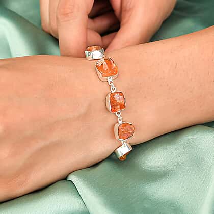 Enriched with deep red hues, this fire opal bracelet will allure your wrist with a unique charm. This bracelet is crafted in solid sterling silver by expert artisans, has been intrinsically polished, and exudes a beautiful shine. The raw free cut of the fire opal is flush set with the same shape, providing a natural look to your attire. The magical play of colours enriches the fire opal's brilliance. Gift this bracelet to someone you adore or present it to yourself during this festive season.