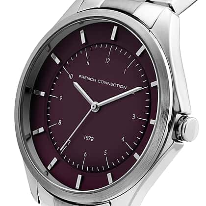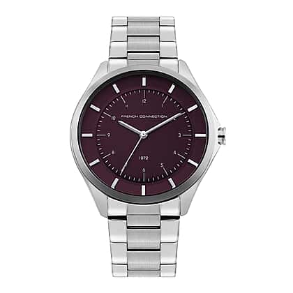 French Connection Quartz Purple Dial Watch with Silver Colour Chain Strap