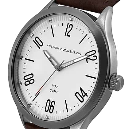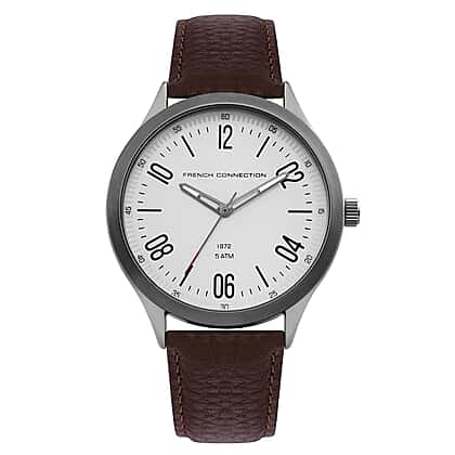 French Connection Quartz White Dial Watch with Brown Leather Strap