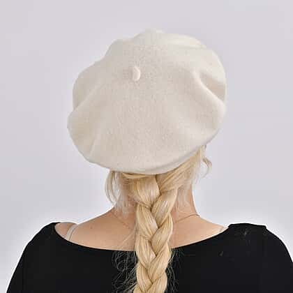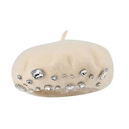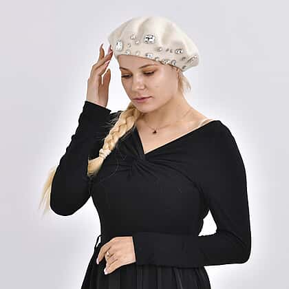French Style Woollen Beret With Crystals - White