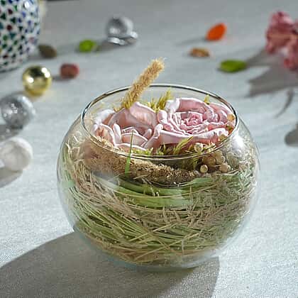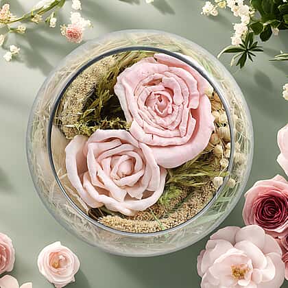Fresh Dried Arrangement in Glass Bowl Sola Thai Rose - Light Pink