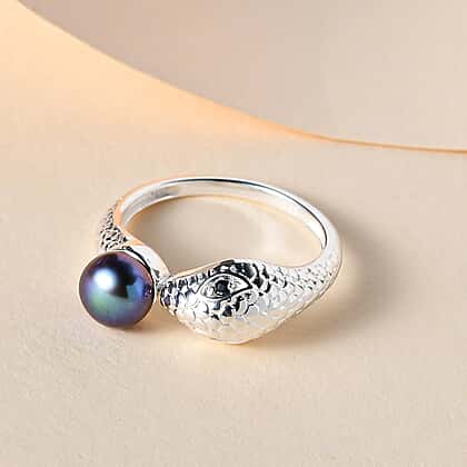 This freshwater peacock pearl ring is crafted as a serpent with 925 sterling silver. The black spinel gemstone, famous as the black beauty, makes the eye of the spirit animal, which completes the circle by touching the end of its body where the beautiful peacock pearl is sitting. The enthralling artwork of this jewel is eye-catching and attracts everybody's attention. The peacock-feather coloured hues of peacock pearl are intriguing, and their vibrancy is hard to pass. This fine jewellery will style your fashion and provide positive vibes.