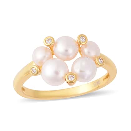 Freshwater White Pearl and Simulated Diamond Cluster Ring in Gold Plated Sterling Silver