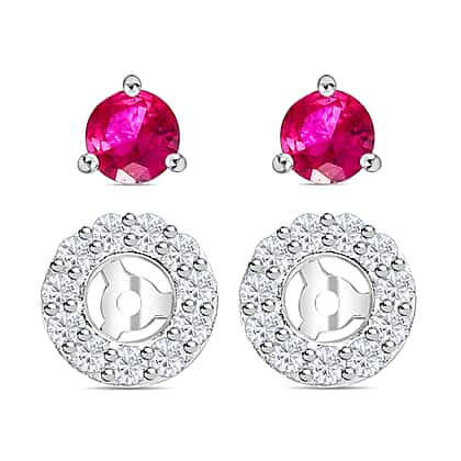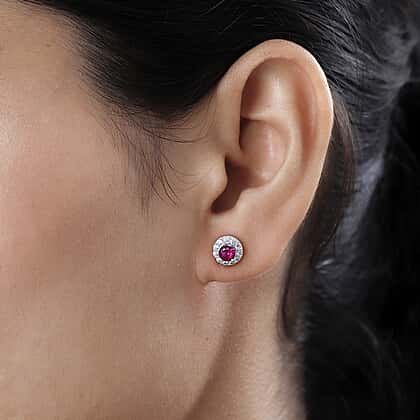 Fuchsia Cubic Zirconia & White Cubic Zirconia Stud Earrings in Sterling Silver, 1.31 Ct.