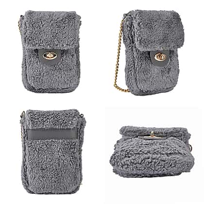 Fur Crossbody Bag with RFID Protection (Size 16x20x3 Cm) - Grey