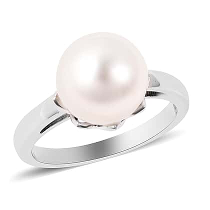 Galatea Edison Pearl Solitaire Ring in Rhodium Plated Sterling Silver