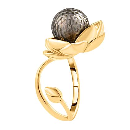Galatea Pearl - Tahiti Pearl Lotus Ring in Vermeil Yellow Gold Plated Sterling Silver 11.25 Ct, Silver Wt. 9.70 Gms.