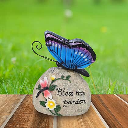 Garden Decorative Butterfly Resin Solar Lamp (Size:16x10x20Cm) - Blue and Purple