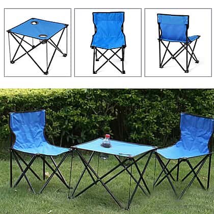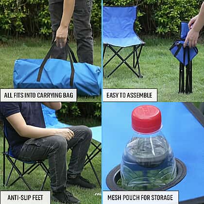 • CONTENT: This 5-piece set includes 1 Camping Table and 4 Chairs in Blue colour