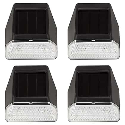 Bright Night Pack of 4 Solar Powered Fence Wall and Post Light - Black
