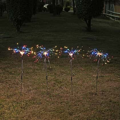 Lowest Price Offer - Set of 4 Solar Firework Lights- Remote Control, 8 Modes (RGB), Timer (80cm) - Black