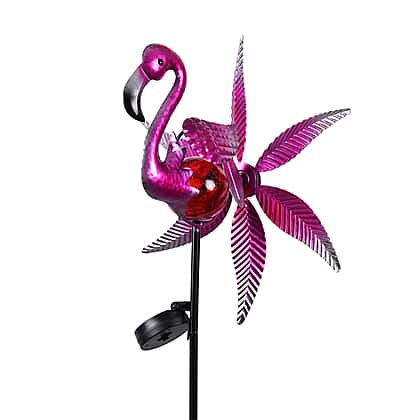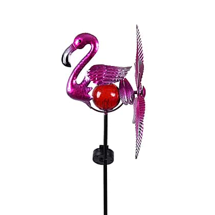 Pink Flamingo Wind Spinner with Solar Panel and LED