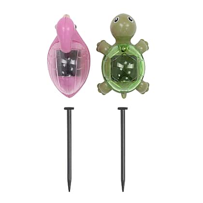 Create a tropical paradise with our Flamingo and Turtle Solar Light - 2 piece set. These delightful creatures illuminate your outdoor space with a soothing glow powered by solar energy. Hassle-free and eco-friendly, place them in a sunny spot for automatic dusk lighting. Crafted with high-quality materials, these lights withstand the elements and bring long-lasting joy. Let these charming companions transport you to a coastal retreat in your backyard.