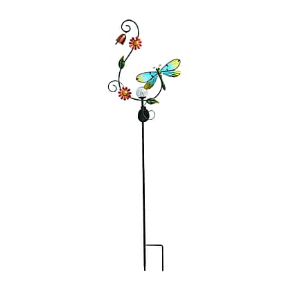 Solar Dragonfly With Cracking Glass Ball Wind Bell Stake Decoration - Multi Color