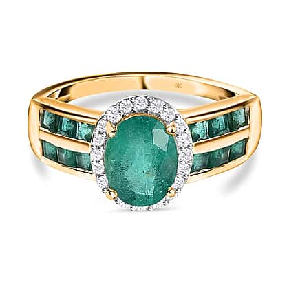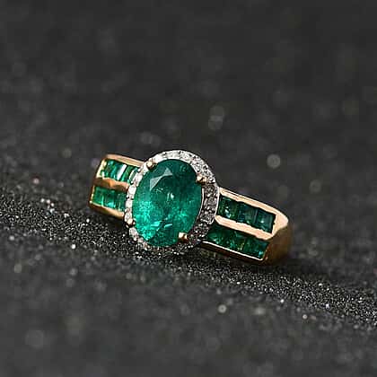 Gemfields AAA Emerald 9K Yellow Gold and Diamond Ring 1.82 Ct.