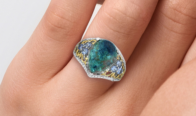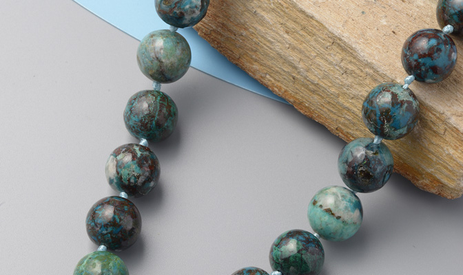 The stone does not go under any treatment. However, a layer of resin is applied on the surface of the stone to make it shine. The stone, when polished, is highly vitreous. The greasy texture of chrysocolla ensures that it throws off the most majestic and alluring display of its animated colours.