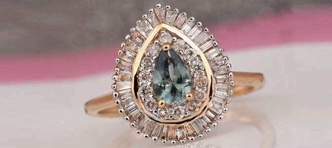 Alexandrite is a type of chyrsoberyl that displays a colour changing property under varying light conditions. It is deep grass green in daylight or fluorescent light, and vivid raspberry red during the night or incandescent light. Most valuable Alexandrite has a 100% colour shift from pure green to pure red. Blue-greens and purplish or brownish reds are of lesser value. Top-quality alexandrite is very rare and uncommon to be found in modern jewellery because it is hardly available and it is too expensive. Even lower quality stones are costly and very limited in supply.