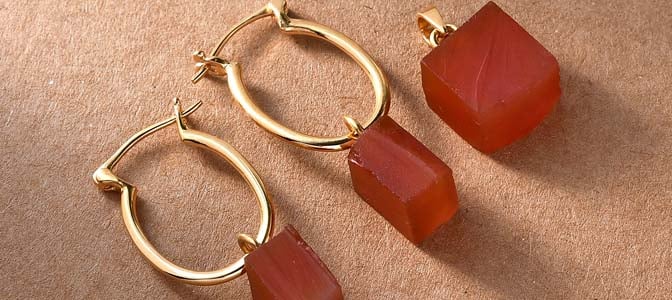 The coloured varieties of chalcedony gems span a rich range of colours and patterns from the deep, opaque green and brown of jasper to the wonderfully original fern-like patterns of moss agate. Rich orange-red carnelians, apple green chrysoprase and deep black onyx are also stunning examples of this versatile family of gemstones.