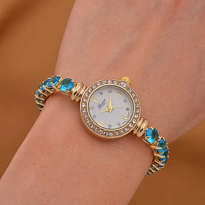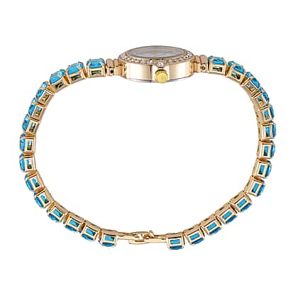 GENOA TIME V2 Japanese Movement 3ATM Water-Resistant Watch with Stainless Steel Back and Skyblue CZ Accents