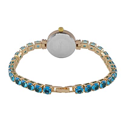 GENOA - Japanese Mov, 3 ATM, Sky Blue CZ-White Crystal Watch