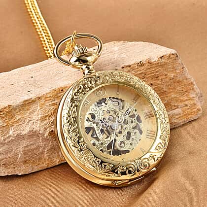 A skeleton dial and an openable case add to the appeal of this lovely pocket watch. For high accuracy, it is driven by a Japanese movement. The pocket watch's water-resistant design protects it from spills and splashes. The link chain has a button hook that allows you to attach it to your pocket and use it easily. The super-stylish pocket watch is enhanced by a link chain to let you carry it easily.