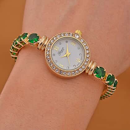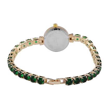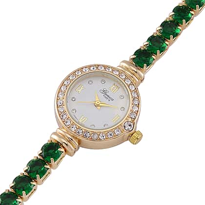 GENOA Japan Movt. 3ATM WR Gold Finish White Crystal - Green Cubic Zirconia Studded Watch