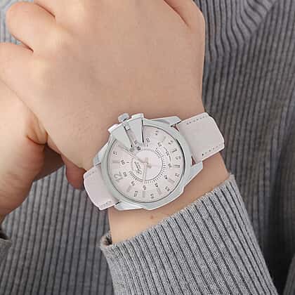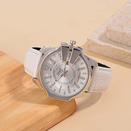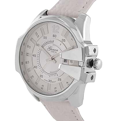 GENOA Japan Movt. 3ATM WR Silver Dial Watch with White Leather Strap