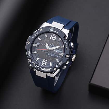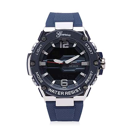 GENOA Japanese and Electronic Movement 5 ATM Water Resistant Watch with Stainless Steel Back and Navy Blue Faux Leather Strap - Navy Blue