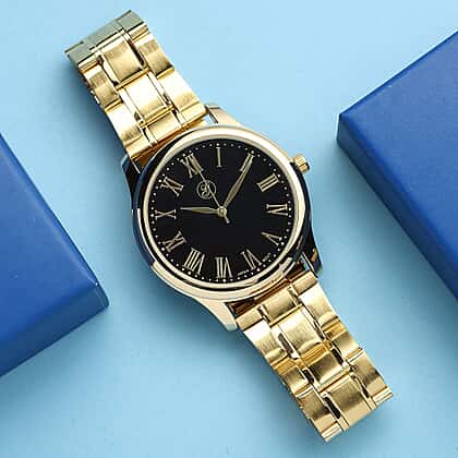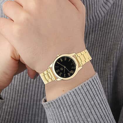GENOA Japanese Movement Black Dial Water Resistant Watch with Stainless Steel Strap