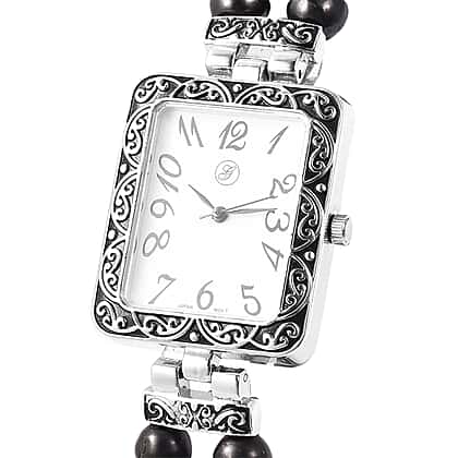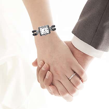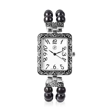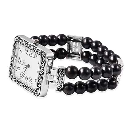 GENOA Japanese Movement Water Resistant Bracelet Watch (Size 6.5-7) with Shungite Beads Stretchable Strap in Natural Stainless Steel 93.00 Ct.