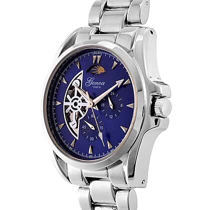 GENOA TIME V2 Automatic Mechanical Multifunction Movt. Watch with Stainless Steel Strap Exhibition Back Water Resistant - Silver