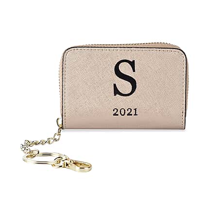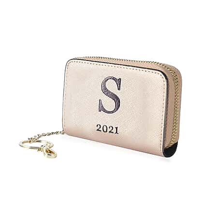 Genuine Leather Alphabet S Wallet with Engraved Message on Back Side (Size 11X7.5X2.5 Cm) - Gold